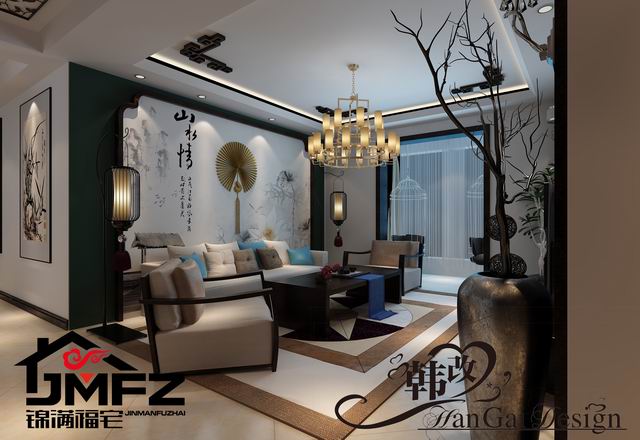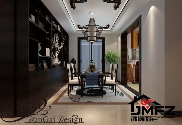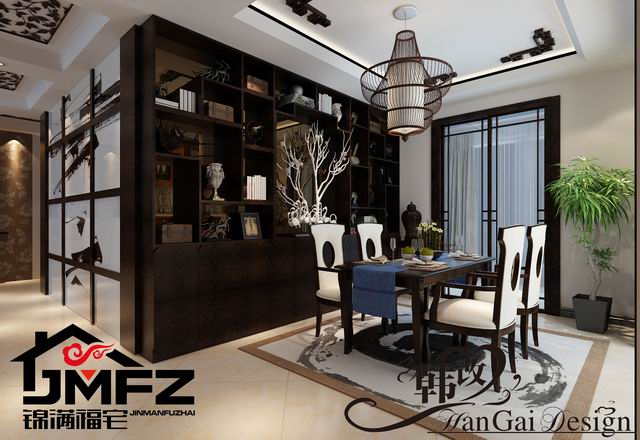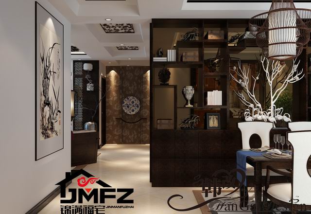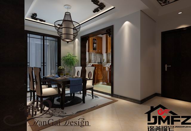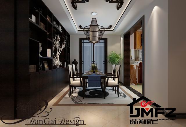 設(shè)計(jì)說明:這是一套三室兩廳一廚兩衛(wèi)的戶型,整體裝修風(fēng)格為中式風(fēng)格,家具色調(diào)采用黑色為主。中國風(fēng)的構(gòu)成主要體現(xiàn)在傳統(tǒng)家具、裝飾品以黑、紅為主的裝飾色彩上。室內(nèi)多采用對(duì)稱式的布局方式,格調(diào)高雅,造型簡(jiǎn)樸優(yōu)美,色彩濃重而成熟。中式風(fēng)格講究對(duì)稱和空間的層次感。所以本設(shè)計(jì)依據(jù)住宅使用人數(shù)和私密程度的不同,做出了分隔的功能性空間,采用“埡口”和簡(jiǎn)約化的“博古架”來做了區(qū)分。整體看上去成熟,穩(wěn)重,大方。